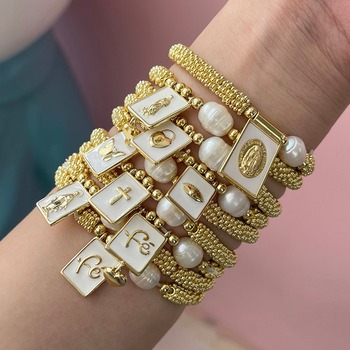 2025 Nieuwste Elegante Parel Armband Trendy Maagd Mary Armband Shell Bedel Elastische Kralen Voor Vrouwen Stijlvolle Sieraden Voor Cadeau