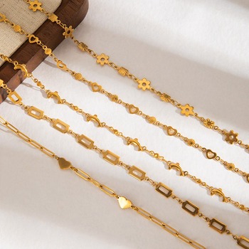 Pulsera de acero inoxidable de moda de verano al por mayor exquisita pequeña flor de verano corazón cuentas cuadradas pulseras de eslabones de cadena ligera